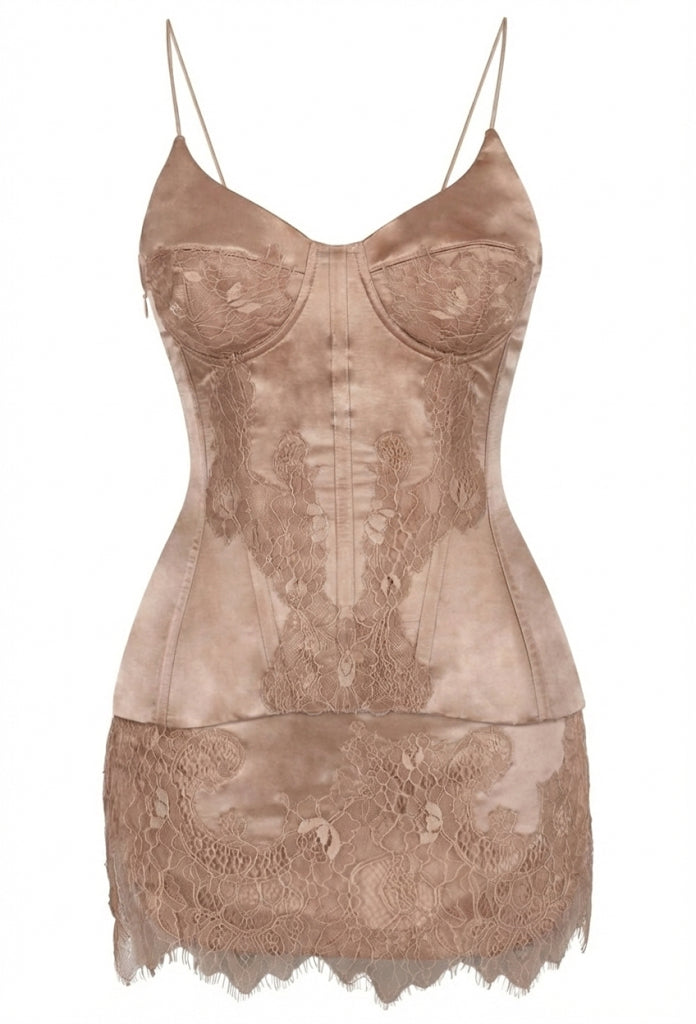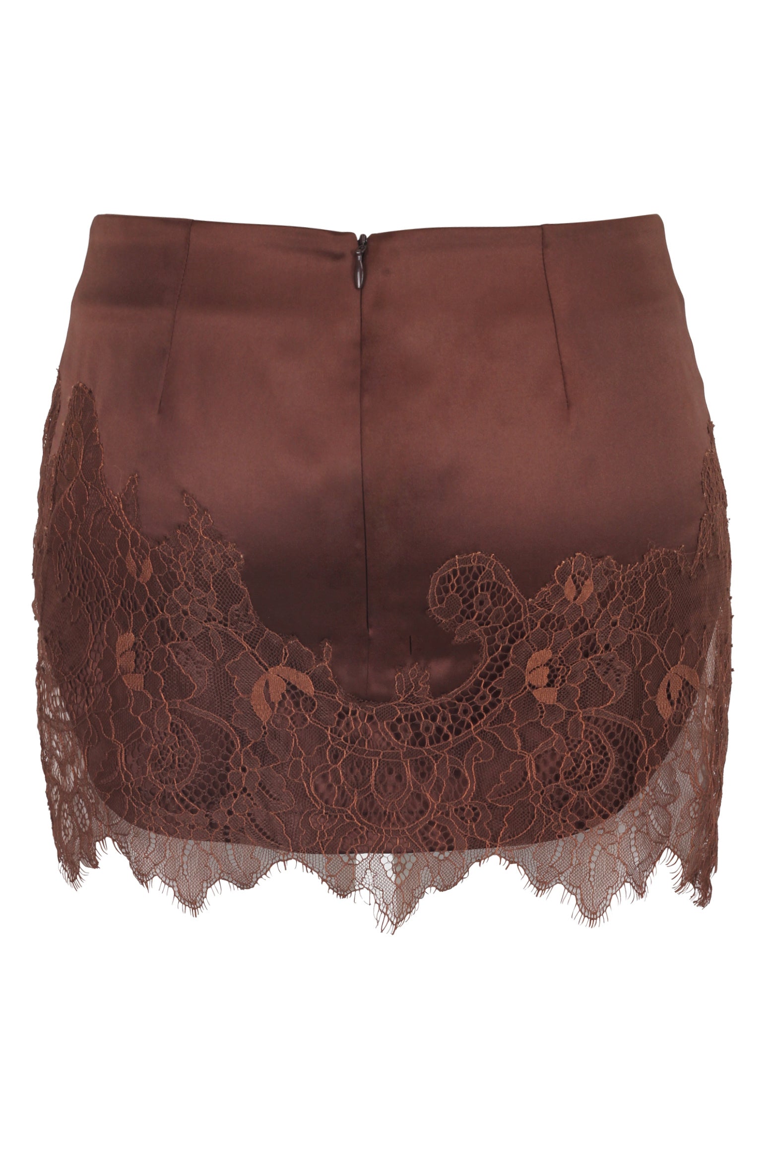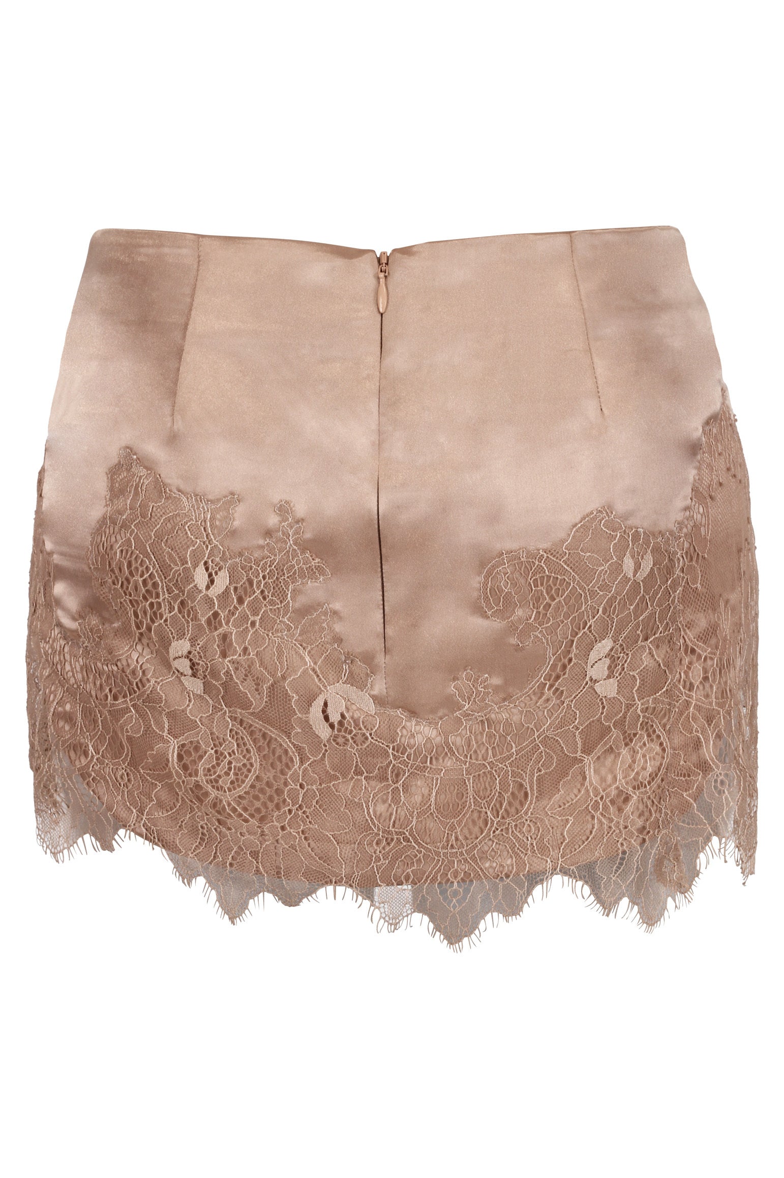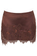 The Amélie Skirt is a study in soft seduction. Crafted from fluid satin, it features curved side hems that reveal delicate lace directly against the skin, creating an understated yet sensual contrast. Designed to sit high on the waist and fall into a graceful silhouette, it moves with quiet confidence and timeless femininity.